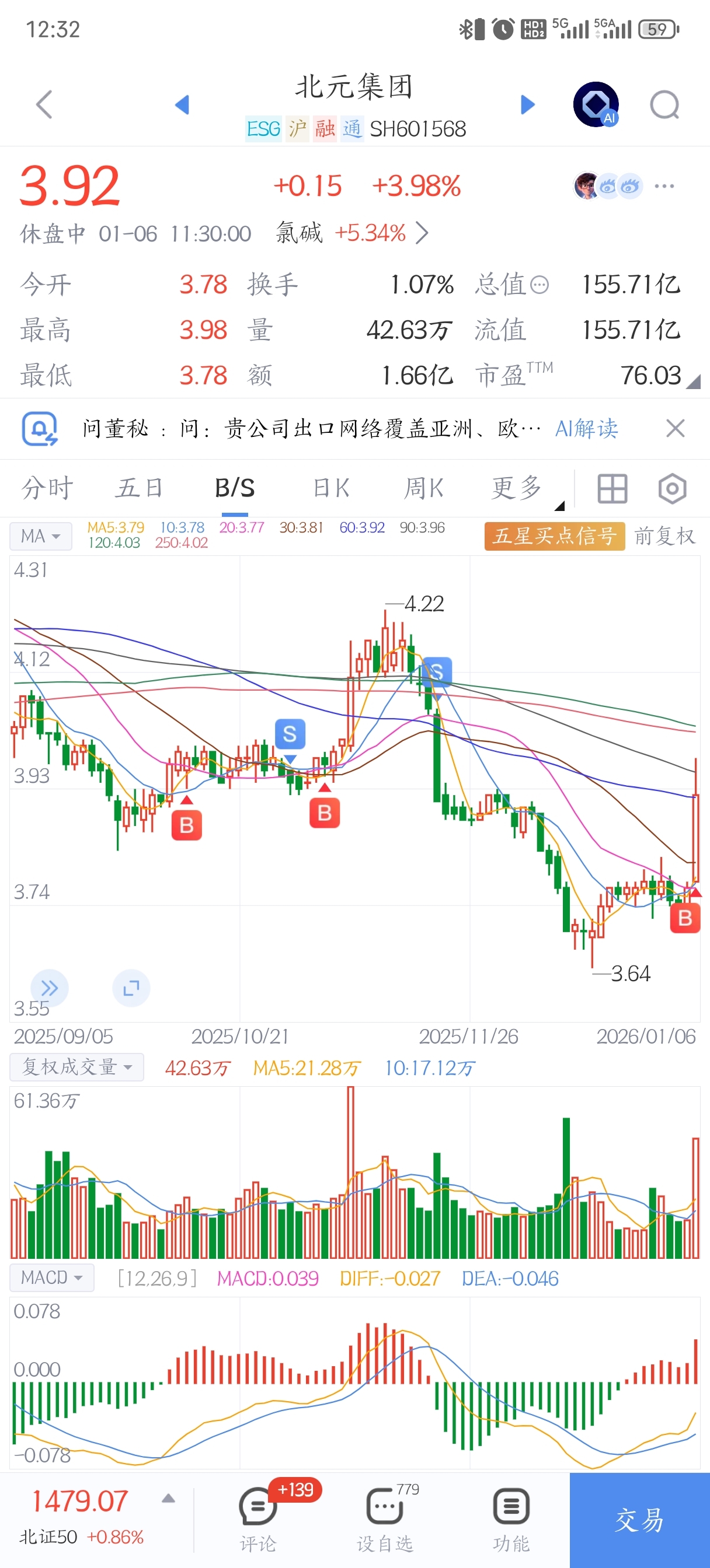 $卫星化学(SZ002648)$ $和邦生物(SH603077)$ $西陇科学(SZ002584)$ 化工板块总算是拉了,板块轮动虽然快,但是化工板块短时间没那么快结束,还可以低吸,大数据下跌趋势的化工板块出现了B点,那么上升趋势的这三个化工股更佳,个人看法仅供参考