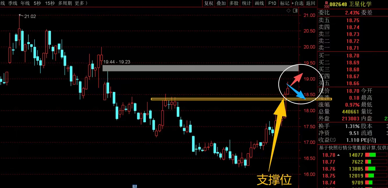 $卫星化学(SZ002648)$ 前期趋势走得比较弱,但近期不断拉升反弹,走出了一个圆弧底的形态,整体略微走好了,短线来看,接下来就盯着脚底横线位置的支撑,能站稳就还能继续震荡看涨,但如果有效跌破,短线就要回落调整了,前面低位有过加仓的就高抛做差不纠结,重仓的就考虑减仓应对回落风险。#复盘记录# #炒股日记#