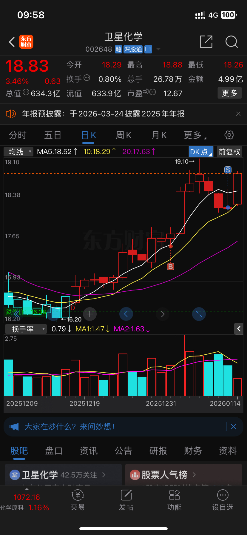 $卫星化学(SZ002648)$ 昨天走了