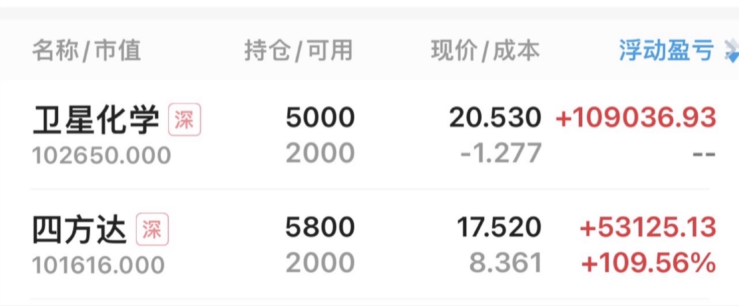 $卫星化学(SZ002648)$ 我拿了十年,现在本金是负数,这是早上的截图。