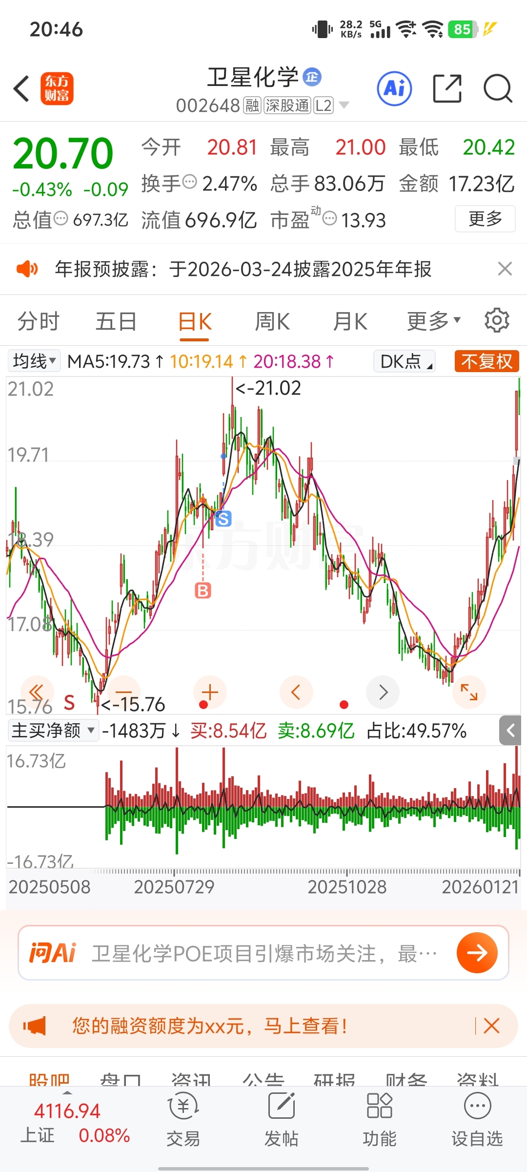 $卫星化学(SZ002648)$ 怕是上不了车了