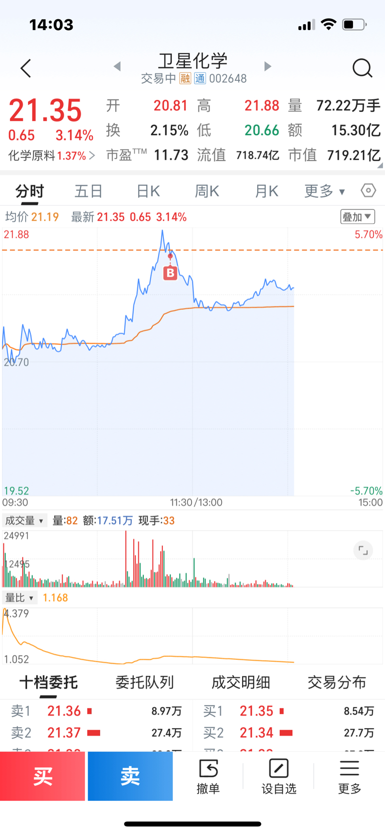 $卫星化学(SZ002648)$ 山顶上好凉快,9000股