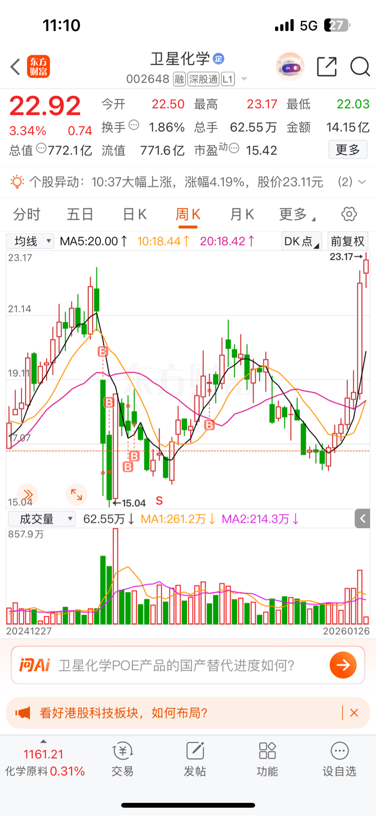 $卫星化学(SZ002648)$ 长线必定过山车,短线必定卖飞。认定好股票趁利空下跌买入,然后坚定长期持有,无视波动,就这么简单