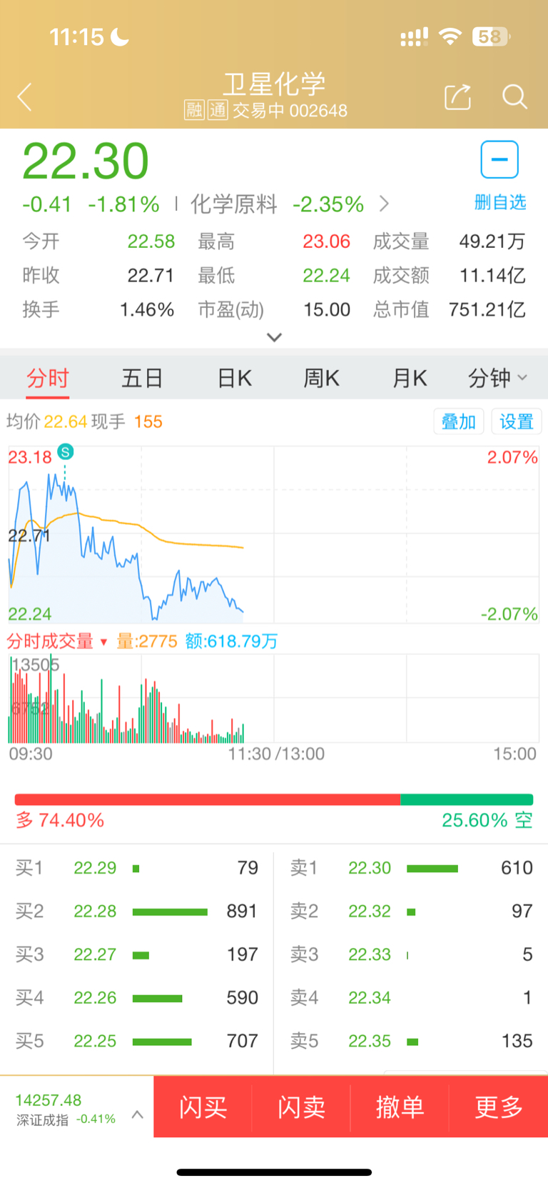 $卫星化学(SZ002648)$ 兄弟们走了,明天还有最后高度。不等了