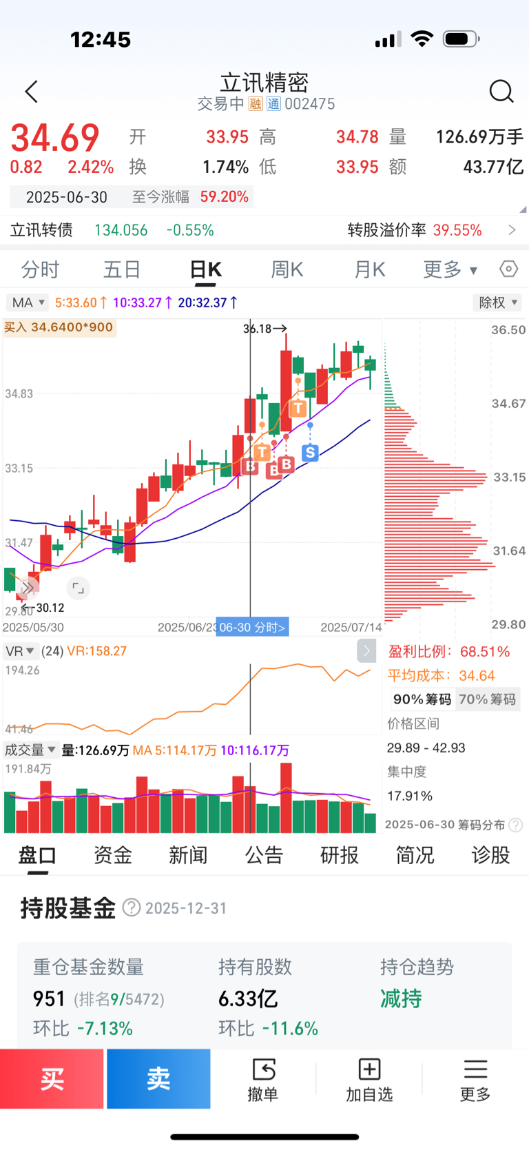 $卫星化学(SZ002648)$ 从立讯,歌尔,工业这几个机构票走势分析卫星。机构由减持到增持,一路吃掉套牢盘与当时 前期 30~35时很像。32~35 震了半个月。最后