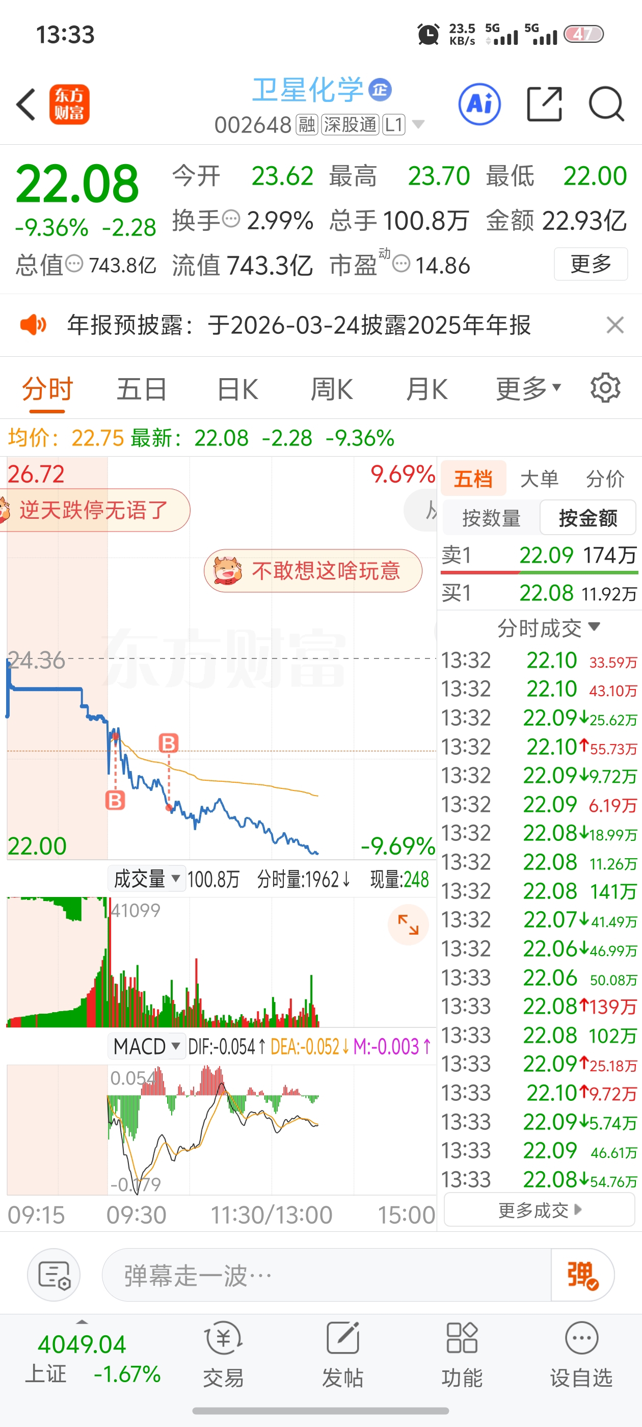 $卫星化学(SZ002648)$ 买入必崩,嘻嘻嘻,吃跌停