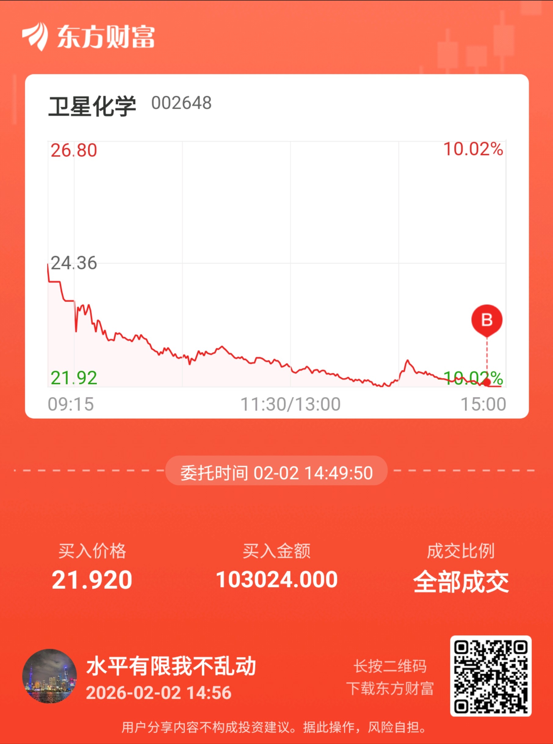 温馨提示: 1.根据《证券法》规定,禁止编造、传播虚假信息或者误导性信息,扰乱证券市场;2.用户在本社区发表的所有资料、言论等仅代表个人观点,与本网站立场无关,不对您构成任何投资建议。用户应基于自己的独立判断,自行决定证券投资并承担相应风险。《东方财富社区管理规定》