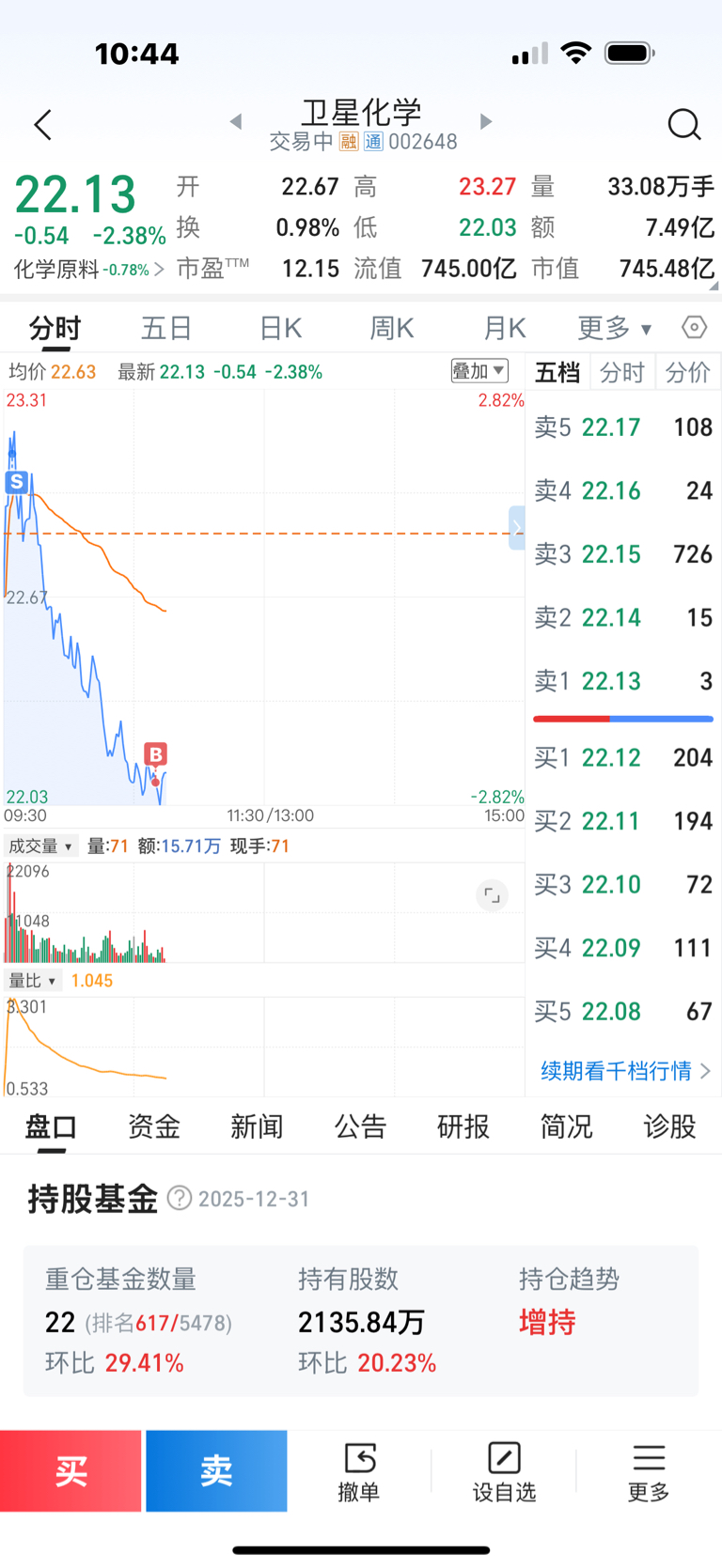 $卫星化学(SZ002648)$ 仓小的好处,随便做T