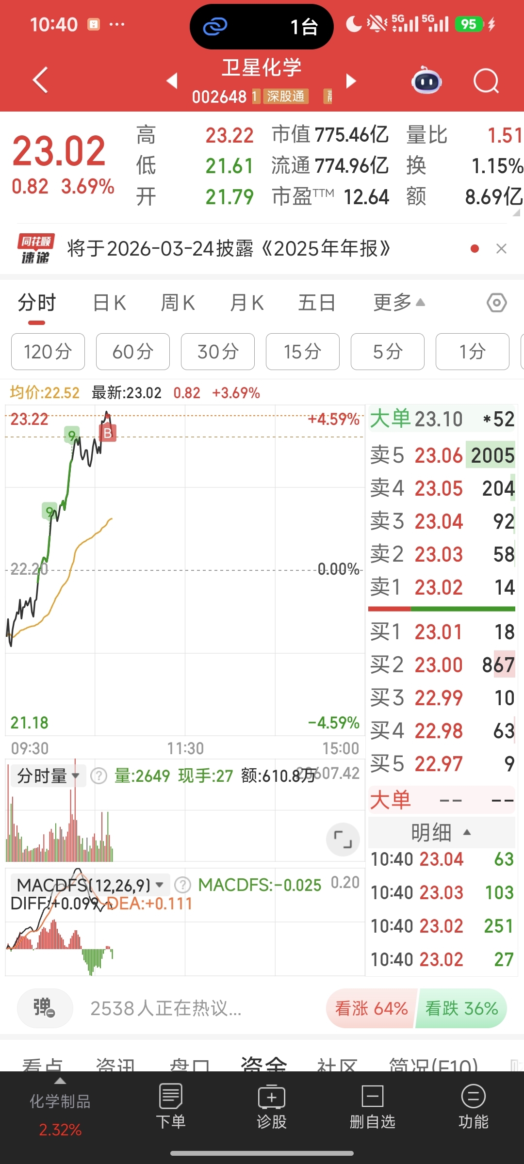 $卫星化学(SZ002648)$ 买了一手被我买崩了