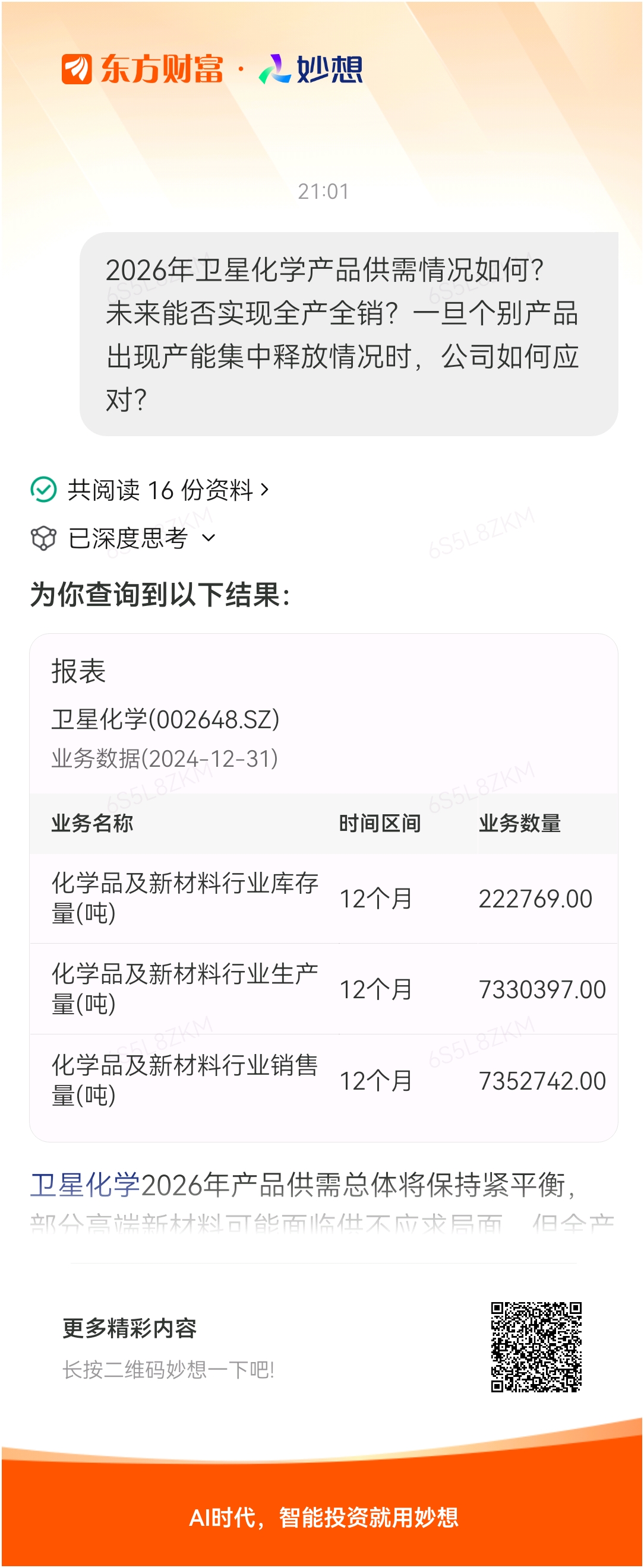 2026年卫星化学产品供需情况如何?未来能否实现全产全销?一旦个别产品出现产能集中释放情况时,公司如何应对?$卫星化学(SZ002648)$$沪深300ETF华夏(SH510330)$$细分化工(SH000813)$