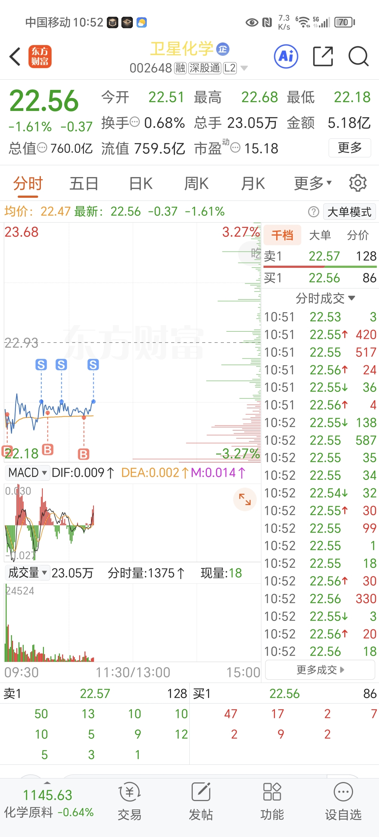 $卫星化学(SZ002648)$ 主力,你非要压盘,我没办法挣大钱,我挣个话费总行吧