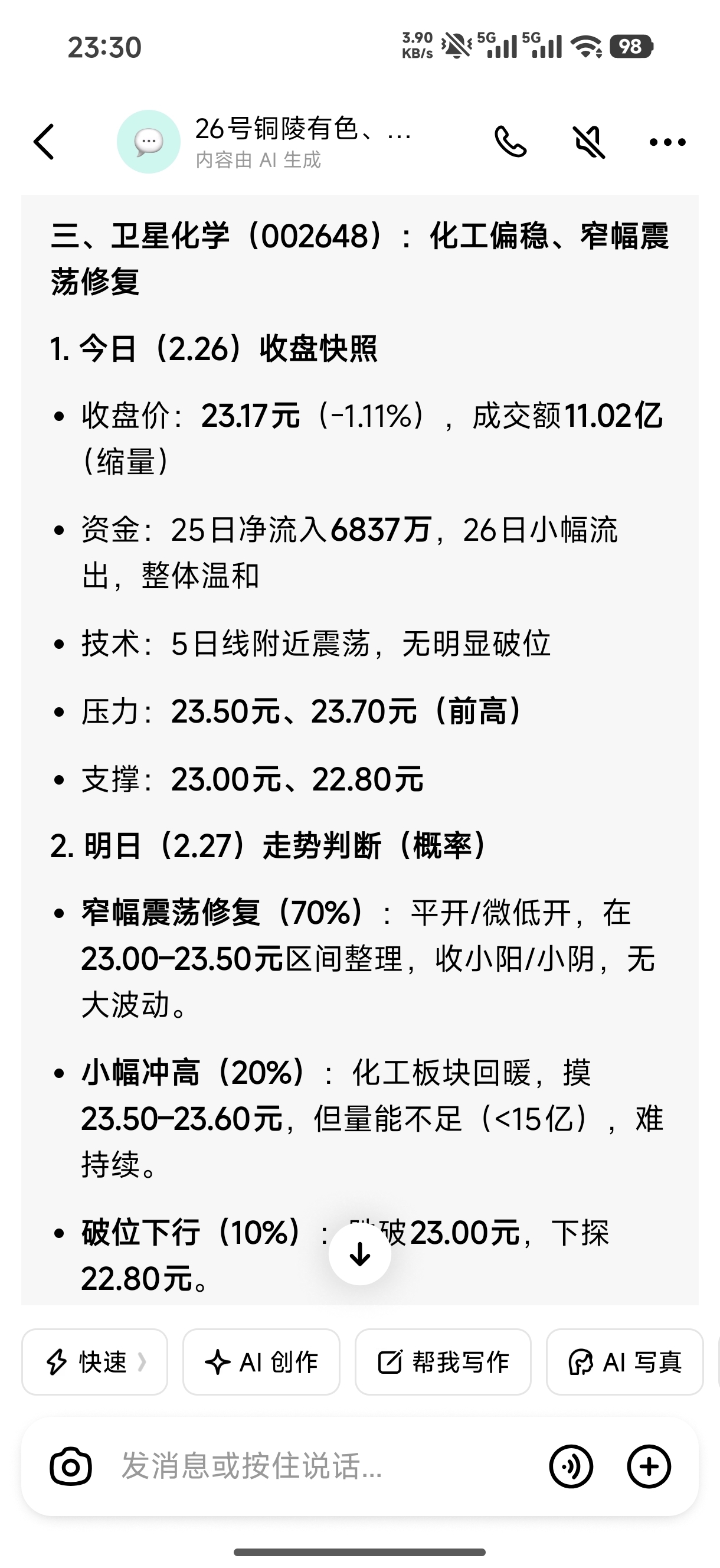 $卫星化学(SZ002648)$ 大概率不跌那无所谓了