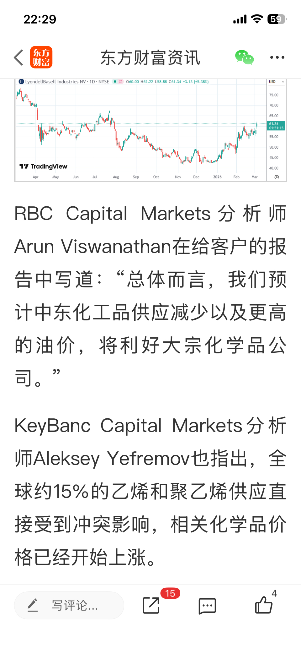 中东化工品供应减少以及更高的油价,将利好大宗化学品公司。美股利安德巴塞尔工业暴涨