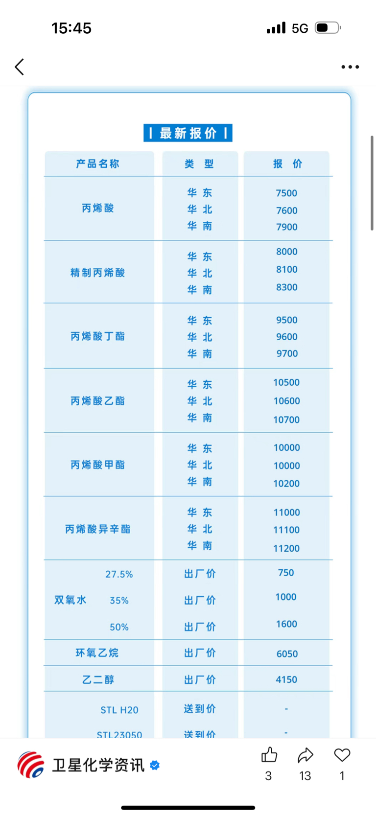 $卫星化学(SZ002648)$ 看到评论区都好想笑,好多都还在一直盯着赫尔木玆海峡看,赫尔木玆海峡封不封跟卫星化学有什么关系?股票因为什么涨的都不知道,化工品涨价啊,周末国内国外持续涨价持续发酵,预期直接拉满,卫星化学开启上行周期,在情绪周期里管你成本多少,成本涨多少都无所谓,大家都会忽略成本,只会看到涨价两个字~