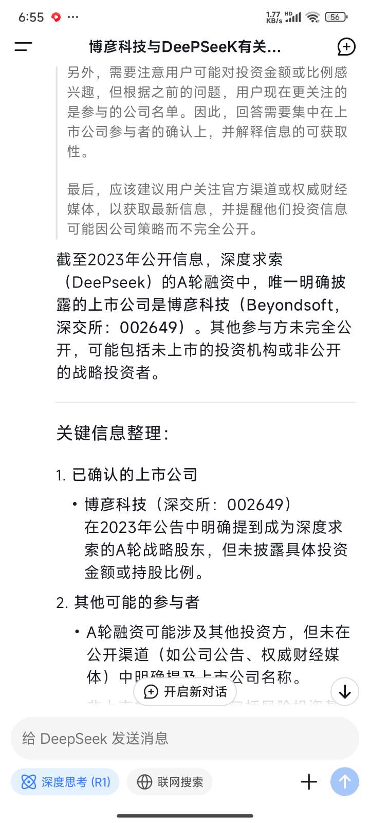 博彦科技投资了DeepseeK,是其股东,深度受益DeepSeek