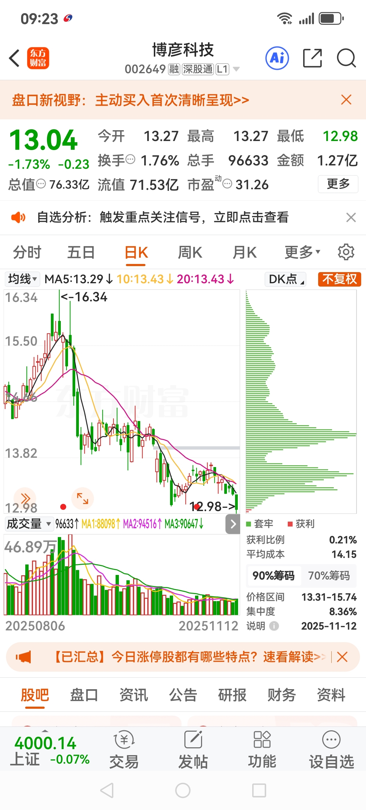 $博彦科技(SZ002649)$ 大盘连创十年新高,但大A却有绩优科技股被自己打残成98%筹码套牢,真是奇葩了!