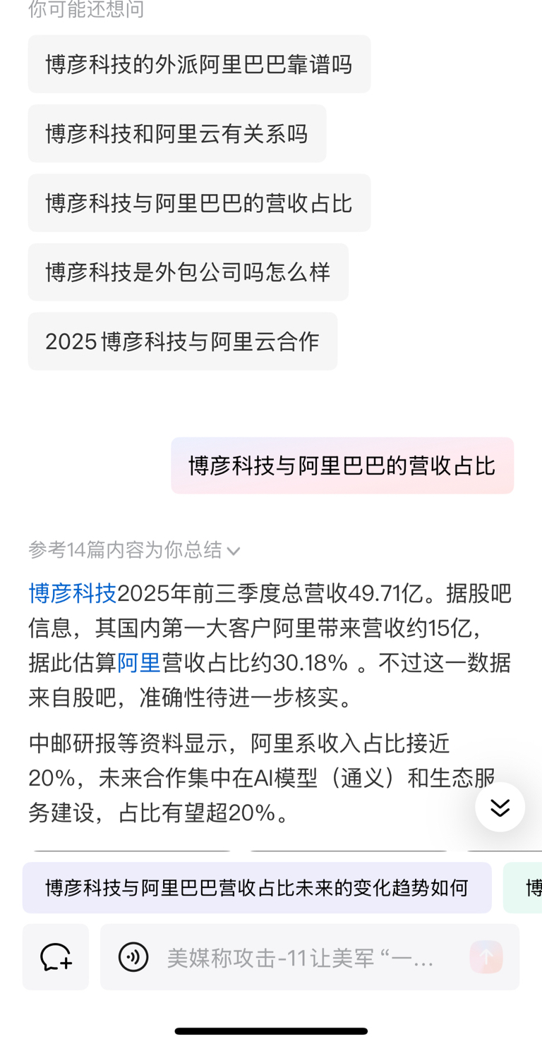 $博彦科技(SZ002649)$ 保守估计博彦和阿里巴巴的业务收入占20%