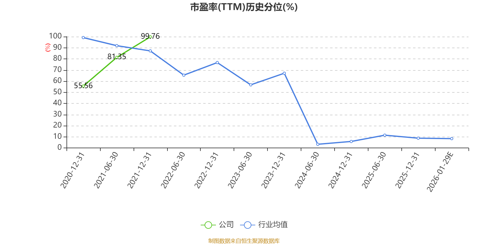 以本次披露业绩预告均值计算,公司近年市盈率(TTM)图如下所示: