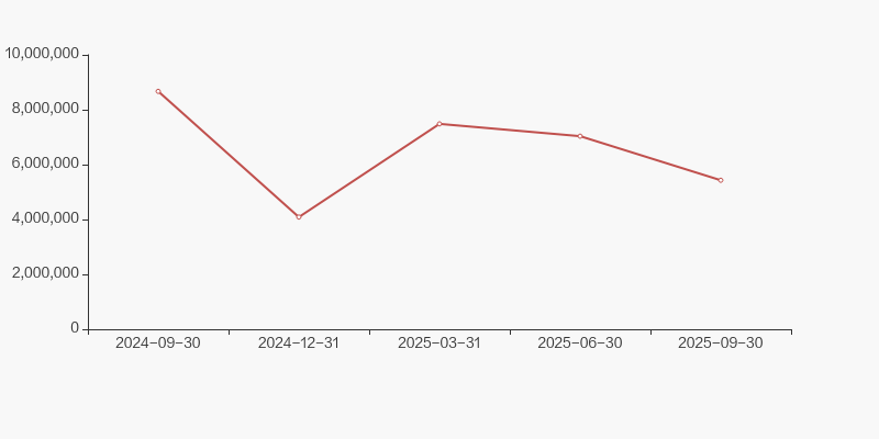 截至2025年9月30日,公司最新总股本为10.33亿股,其中流通股本为5.65亿股。户均持有流通股数量由上期的6582股下降至5884股,户均流通市值6.63万元。