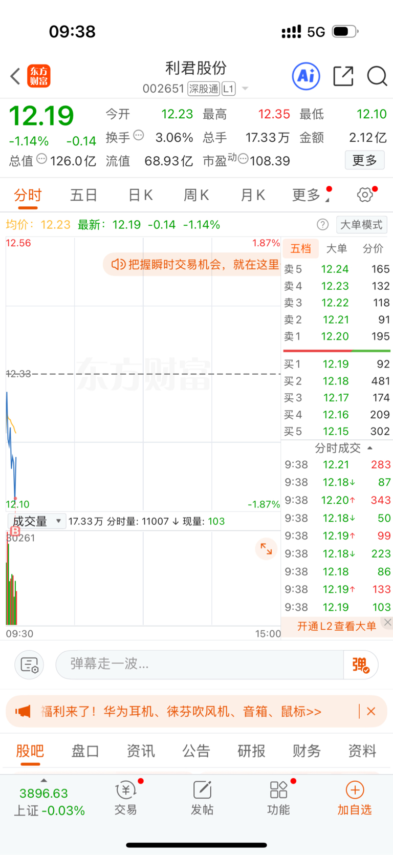 12.14水下低吸介入$利君股份(SZ002651)$ #强势机会# #实盘记录# #投资干货# #投资随笔#
