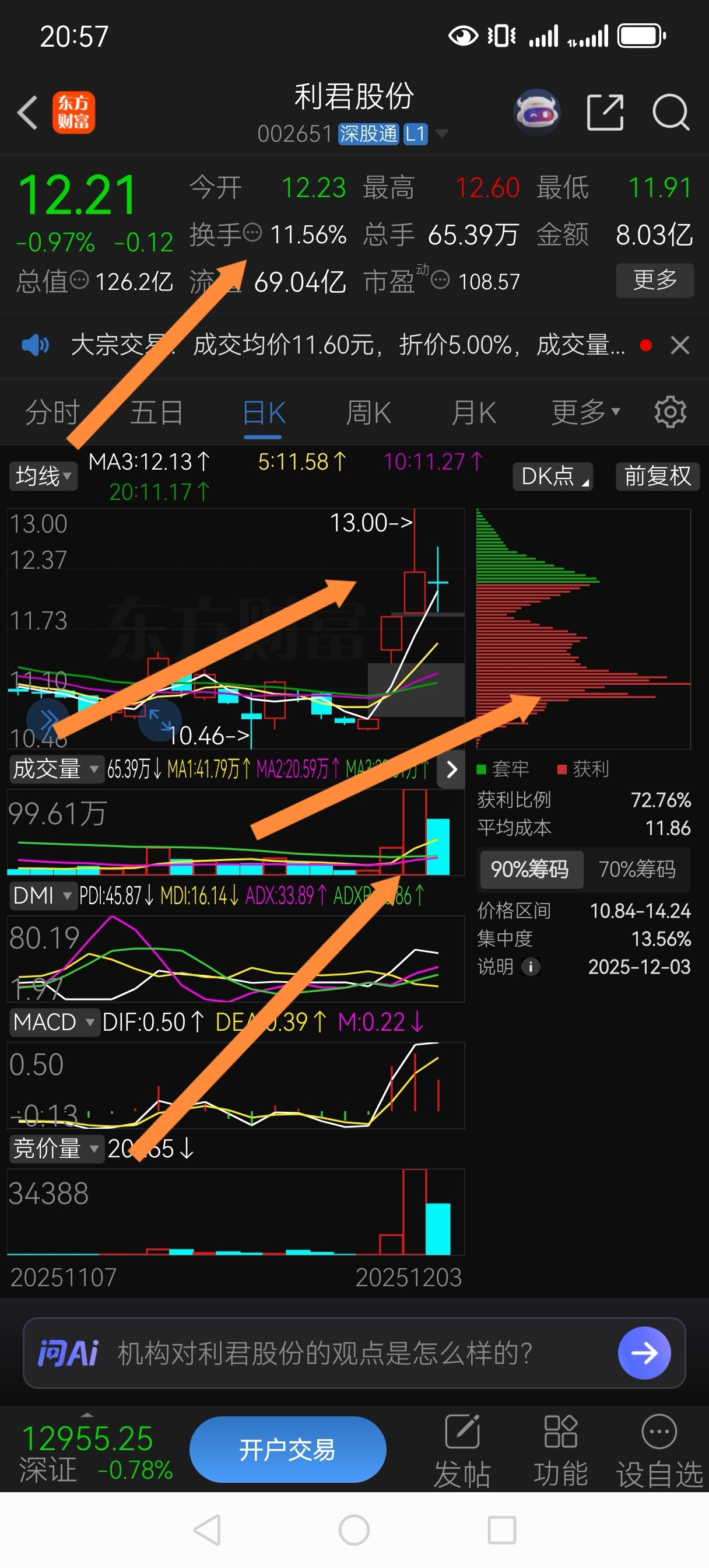 $利君股份(SZ002651)$ 减持终于全部完成,按照约定折价5%完成大宗交易,总算可以轻装上阵,主力操盘再无顾虑……利君今日走势适当缩量,换手率11.65%,交易活跃,股价运行在3日均线上方,底部筹码峰稳定无丝毫变化,主力洗盘吸筹锁仓,维持仍然看好后期走势……
