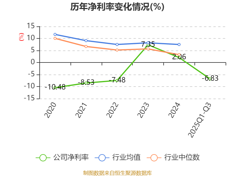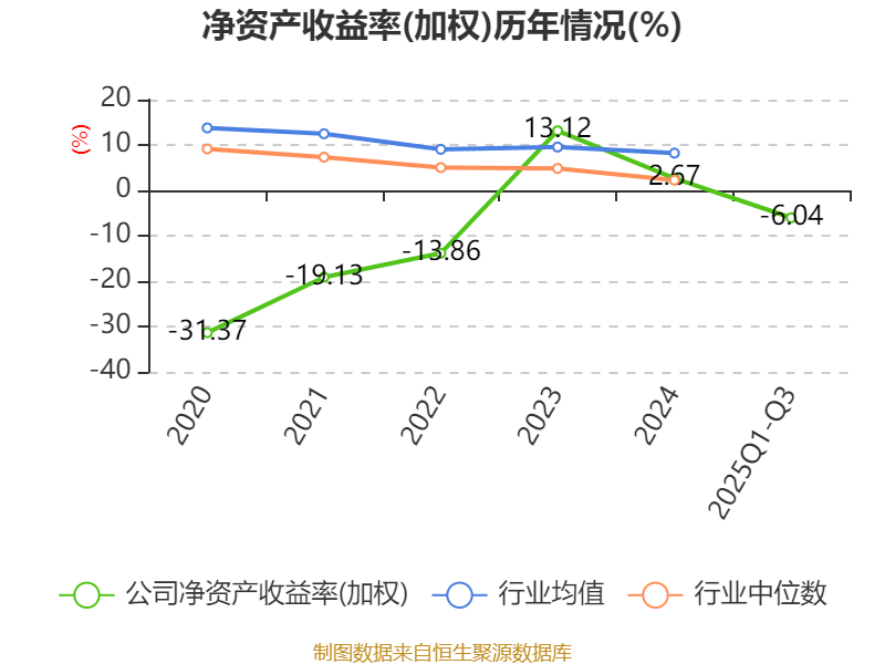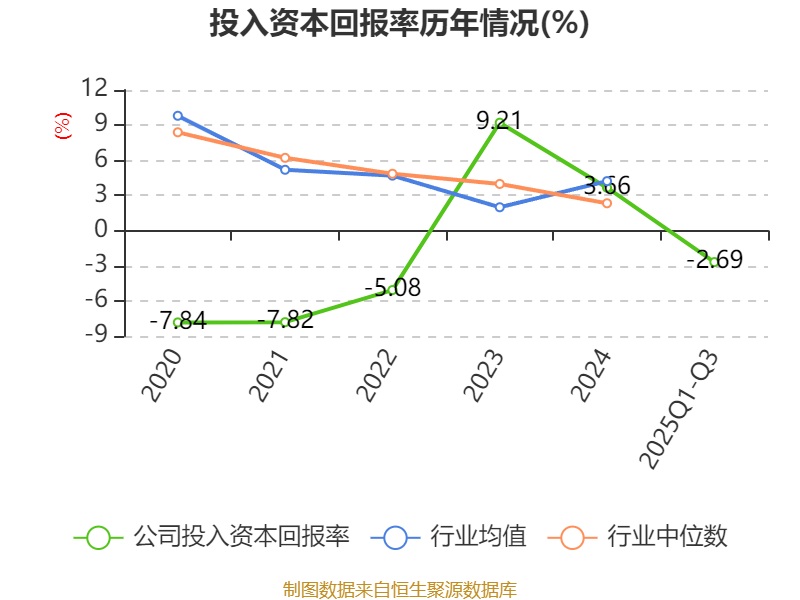 盈利能力方面, 2025年前三季度公司加权平均净资产收益率为-6.04%,同比下降10.6个百分点。公司2025年前三季度投入资本回报率为-2.69%,较上年同期下降7.27个百分点。