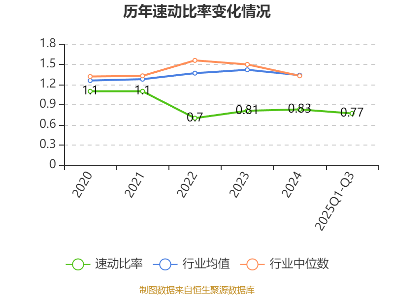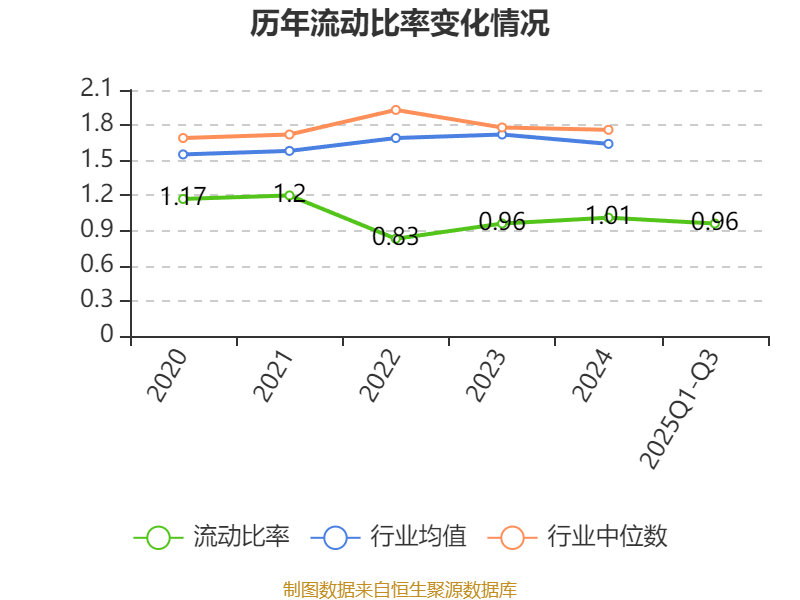2025年前三季度,公司流动比率为0.96,速动比率为0.77。