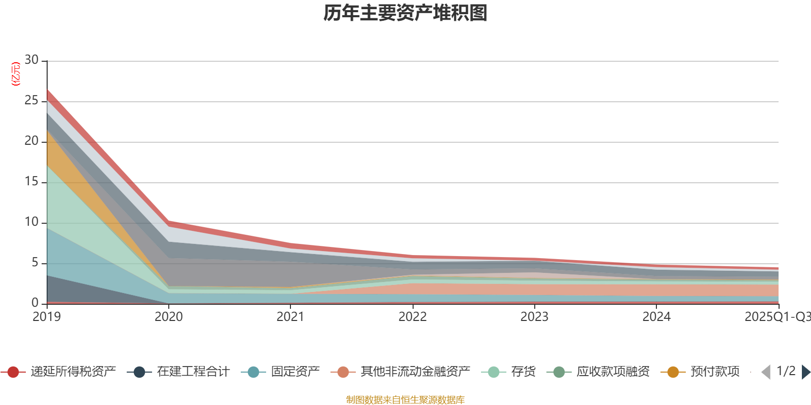 资产重大变化方面,截至2025年三季度末,公司其他非流动金融资产较上年末没有变化,占公司总资产比重上升2.31个百分点;货币资金较上年末减少31.38%,占公司总资产比重下降1.68个百分点;应收票据及应收账款较上年末减少16.47%,占公司总资产比重下降1.62个百分点;预付款项较上年末增加120.41%,占公司总资产比重上升1.02个百分点。