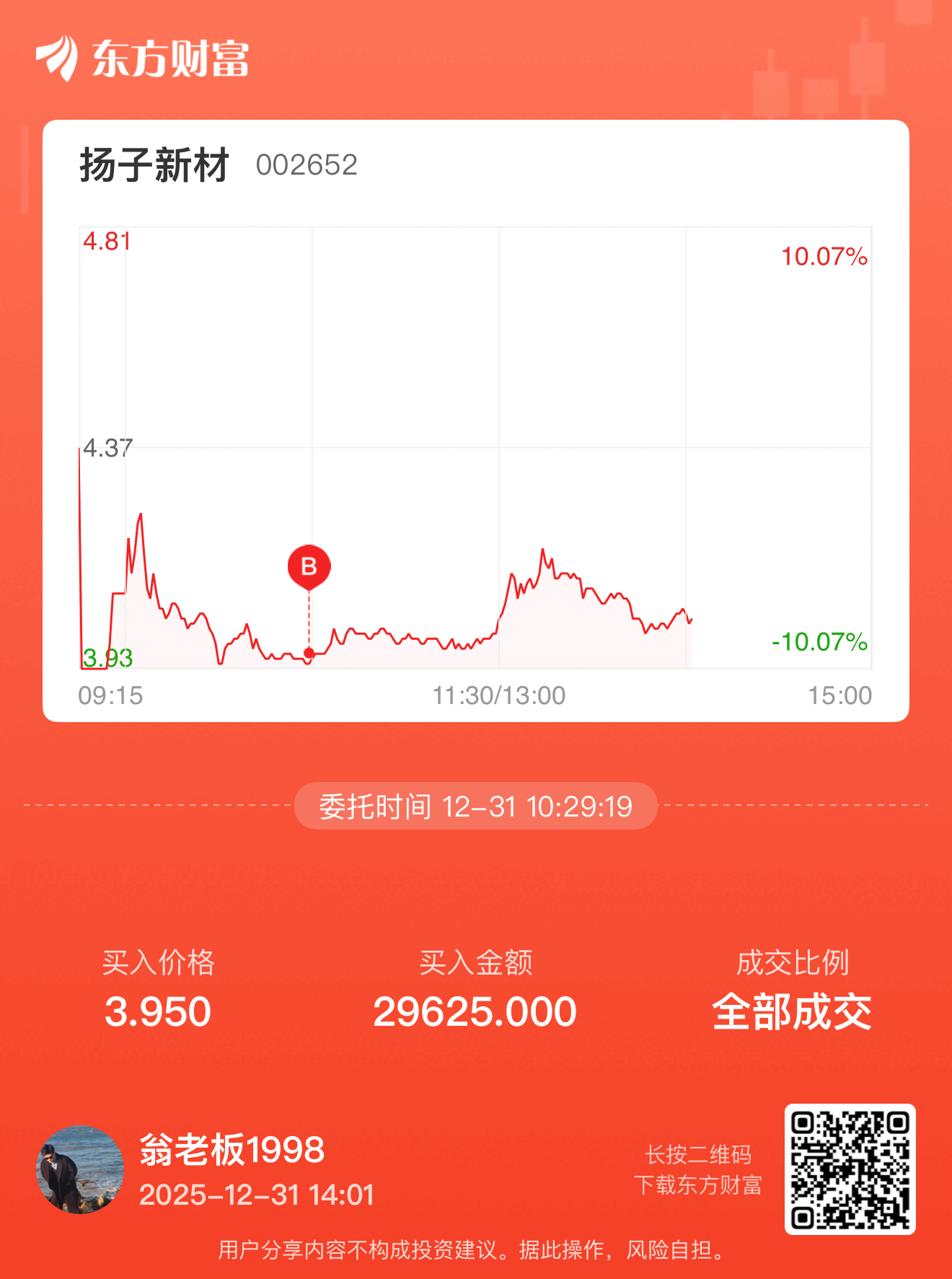 $扬子新材(SZ002652)$ 昨天建仓,今天就得补了