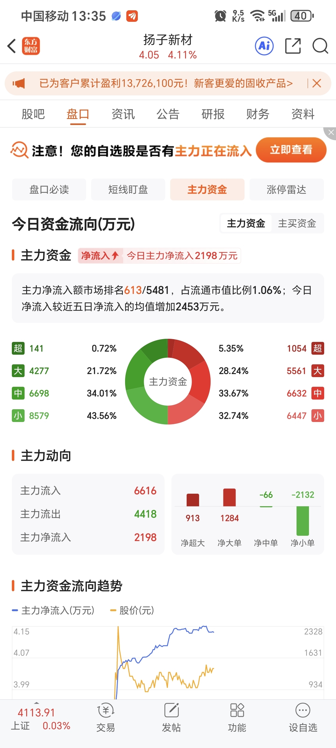 进入资金流入2000多万,看能不能涨停建仓