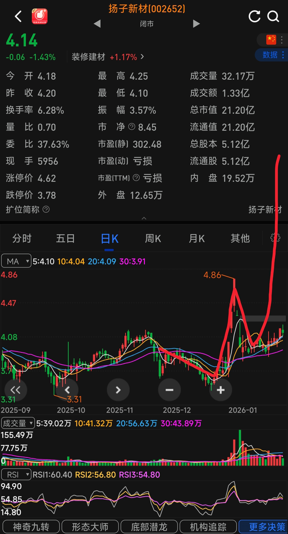 $扬子新材(SZ002652)$ 说实话有点主升浪的感觉,到底要不要买,板块涨这么多你还不起来,又怕是诱多