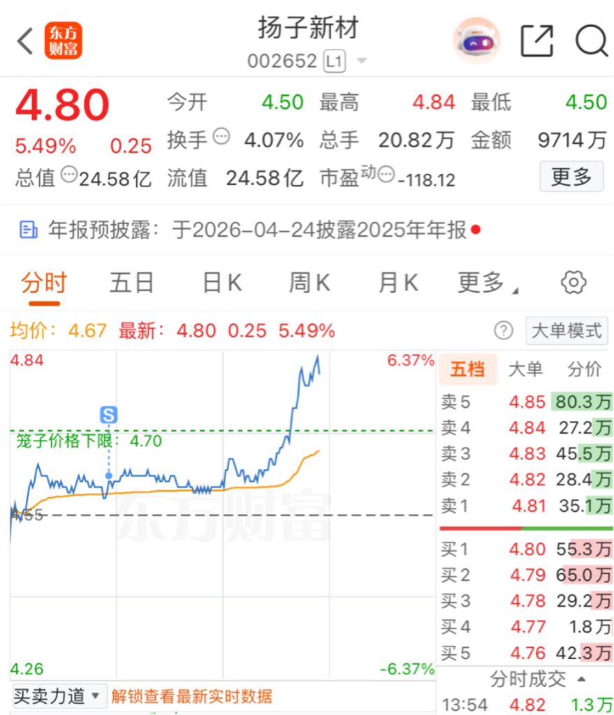 $扬子新材(SZ002652)$ 比杀了我都难受啊
