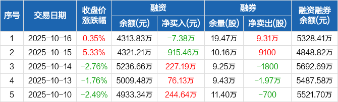 海思科:融资净偿还7.38万元,融资余额4313.83万元(10-16)