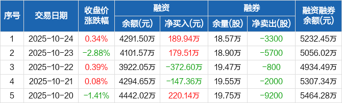 海思科:融资净买入189.94万元,融资余额4291.5万元(10-24)