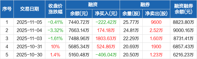 海思科:融资净偿还222.42万元,融资余额7440.72万元(11-05)