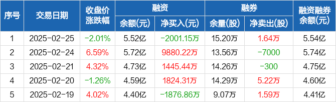 万润科技:融资净偿还2001.15万元,融资余额5.52亿元(02-25)