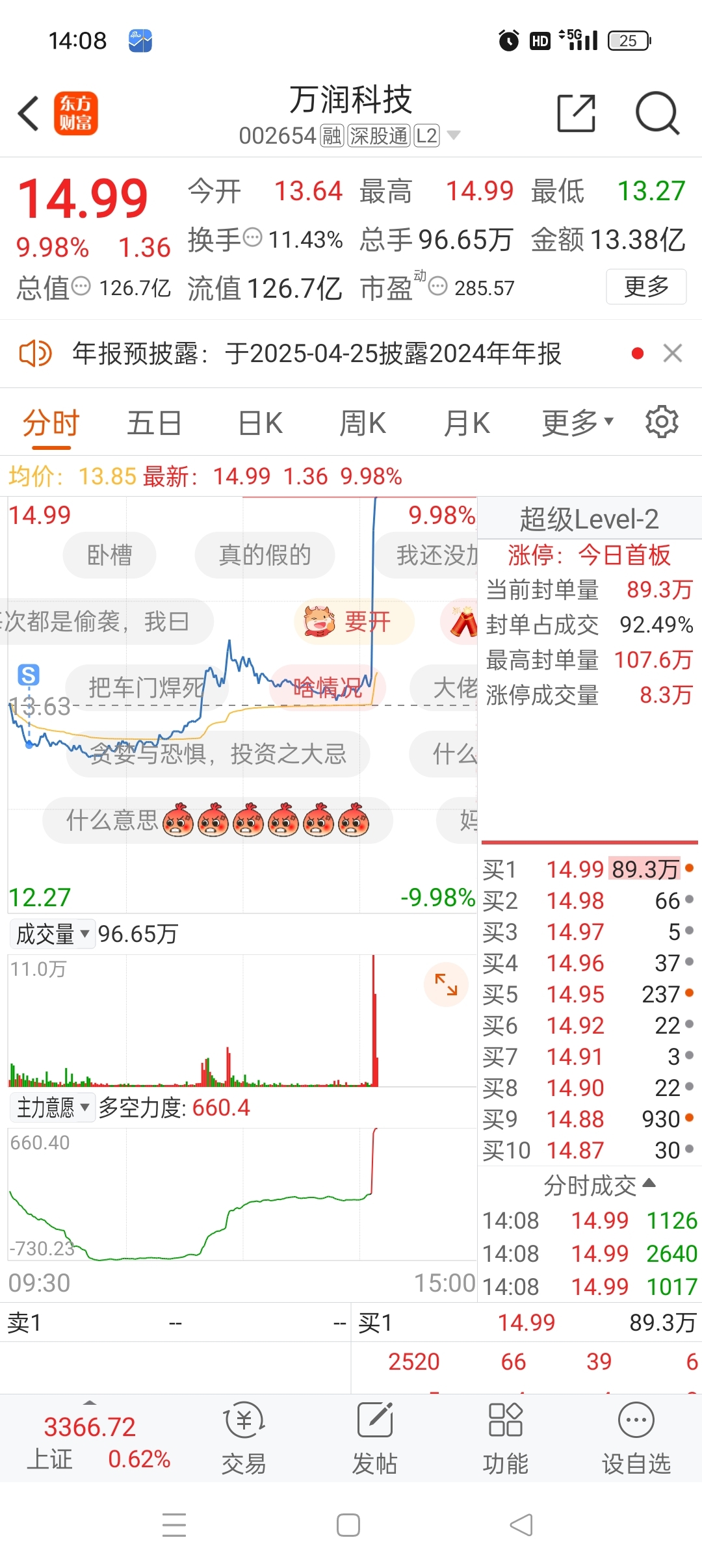 $万润科技(SZ002654)$ 有毒,卖了的就涨停 买了的一直跌…