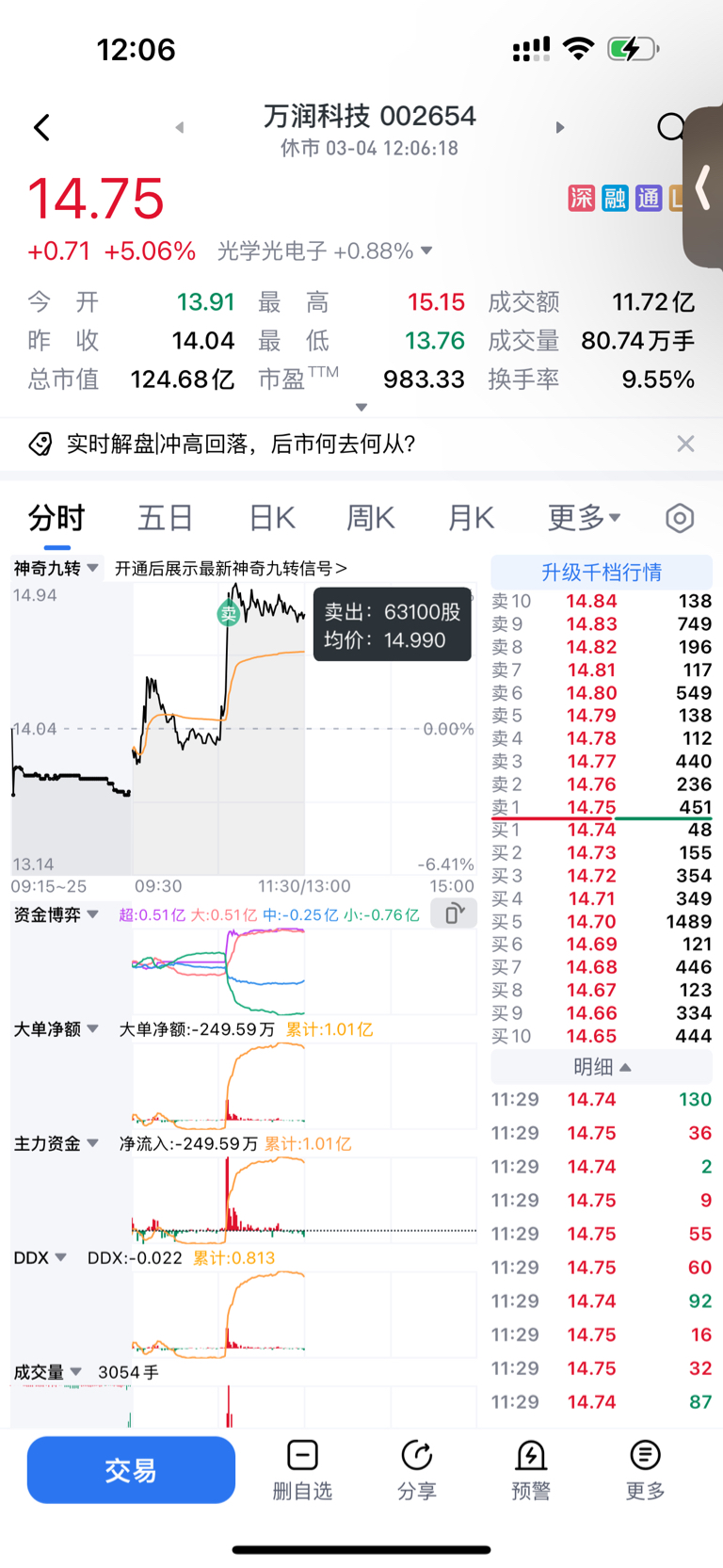 $万润科技(SZ002654)$ 感觉卖飞了