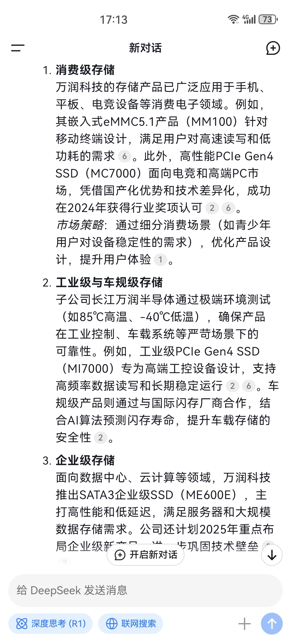 $万润科技(SZ002654)$ 公司以市场需求为导向,结合行业发展趋势及自身情况,积极布局消费级、工业级及企业级等应用赛道的存储产品和市场,以期扩大业务规模,实现可持续高质量发展。