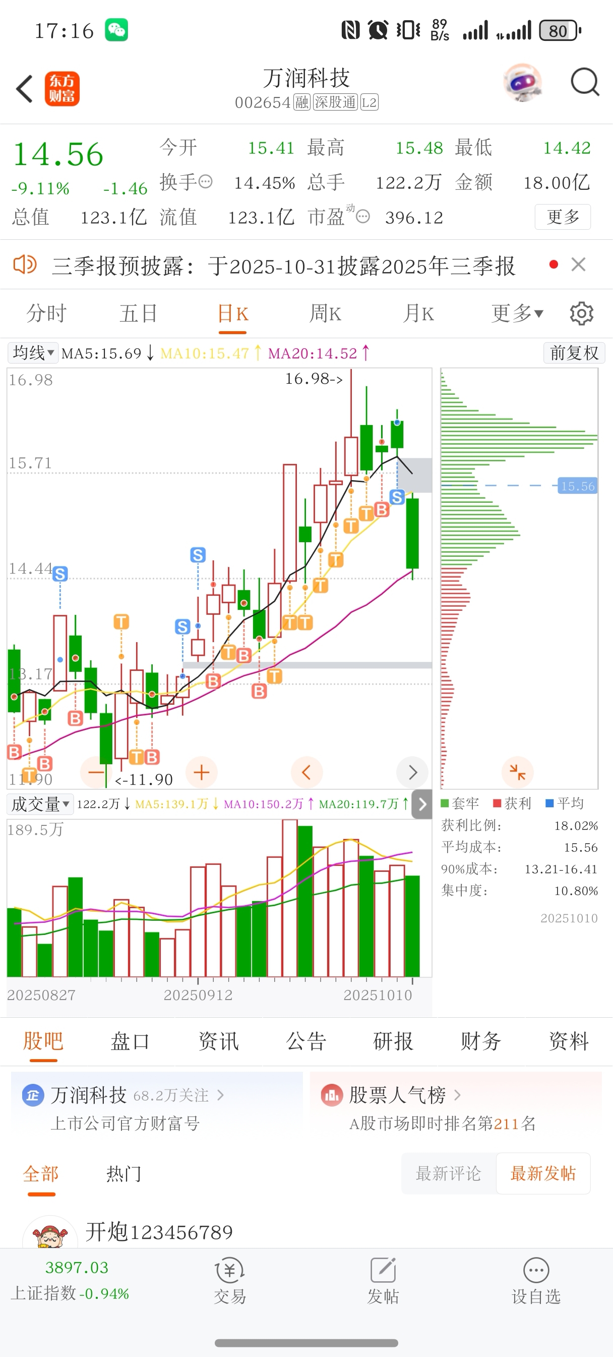 $万润科技(SZ002654)$ 这波操作多少分?