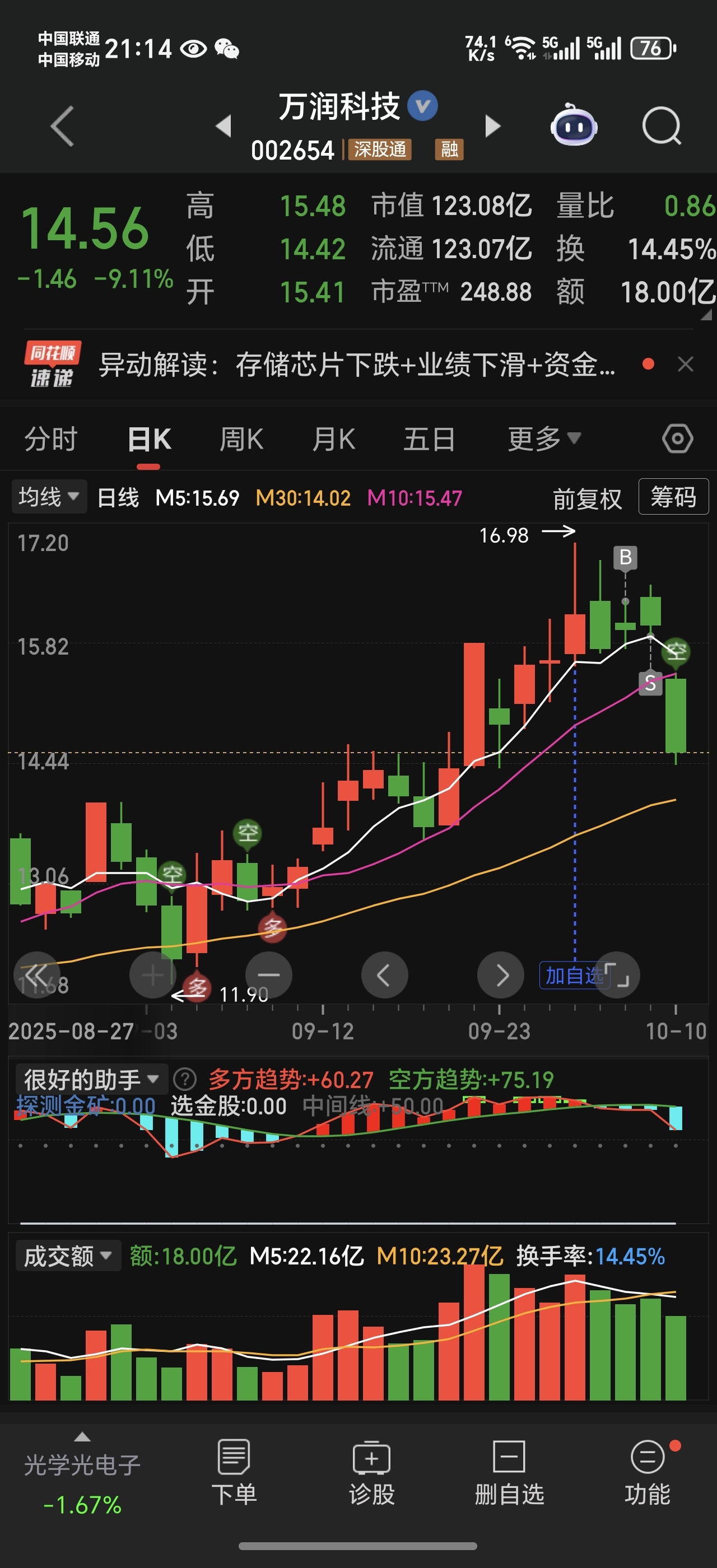 $万润科技(SZ002654)$ 可怕的一天又开始了