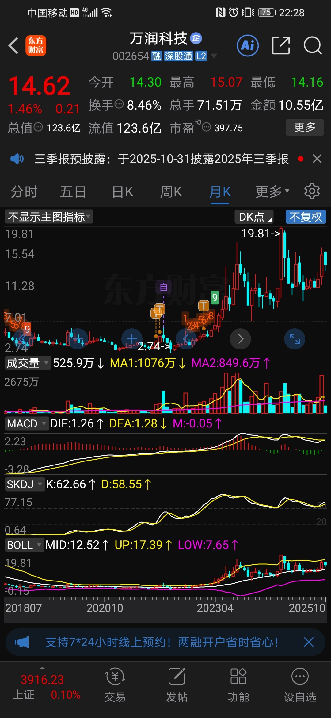 $万润科技(SZ002654)$ 拿住,别t了,拿到五十,