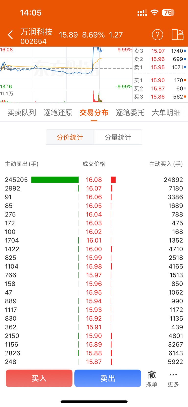 $万润科技(SZ002654)$ 主力在上面看看出了多少货