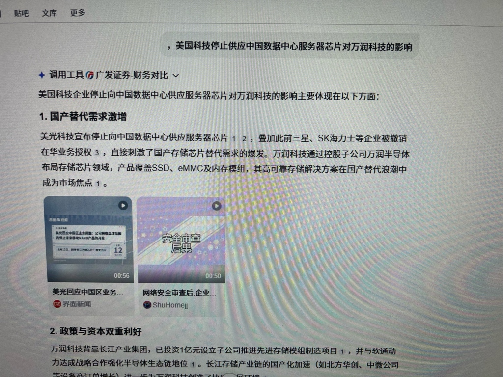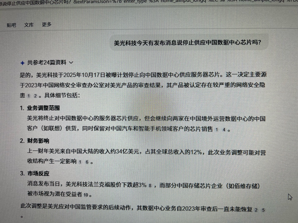 百度Ai出来的结果!美光停止供应中国数据中心服务器芯片是板上钉钉的事了!对万润科