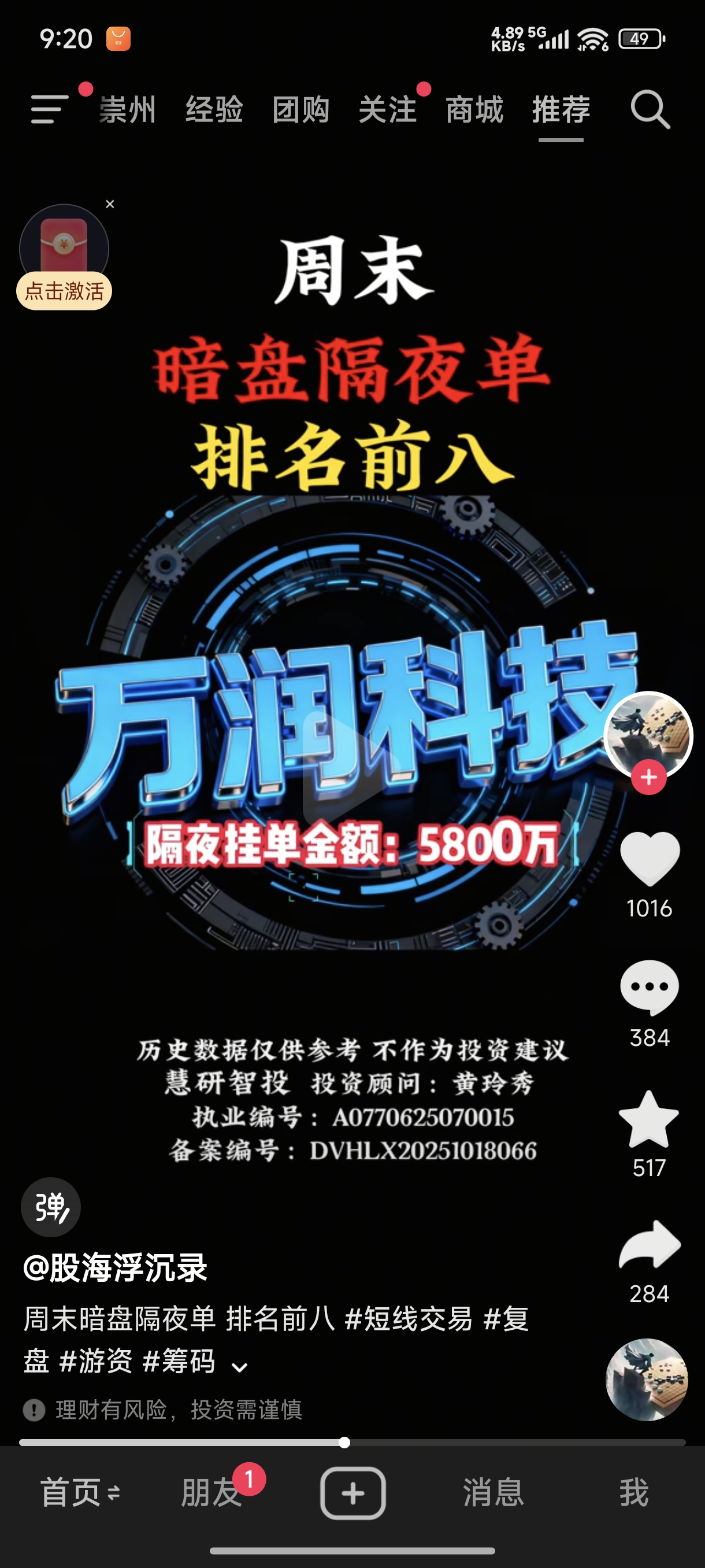 郑重声明:用户在财富号/股吧/博客等社区发表的所有信息(包括但不限于文字、视频、音频、数据及图表)仅代表个人观点,与本网站立场无关,不对您构成任何投资建议,据此操作风险自担。请勿相信代客理财、免费荐股和炒股培训等宣传内容,远离非法证券活动。请勿添加发言用户的手机号码、公众号、微博、微信及QQ等信息,谨防上当受骗!