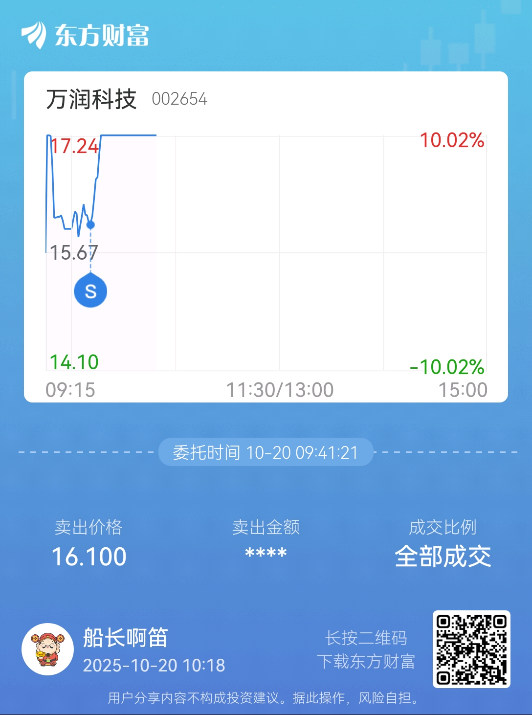 温馨提示: 1.根据《证券法》规定,禁止编造、传播虚假信息或者误导性信息,扰乱证券市场;2.用户在本社区发表的所有资料、言论等仅代表个人观点,与本网站立场无关,不对您构成任何投资建议。用户应基于自己的独立判断,自行决定证券投资并承担相应风险。《东方财富社区管理规定》