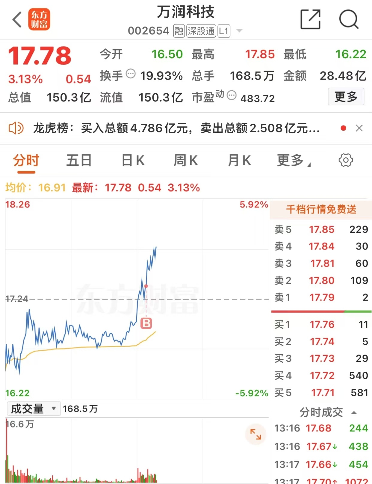 $万润科技(SZ002654)$ 干#炒股日记# #强势机会# #投资干货#