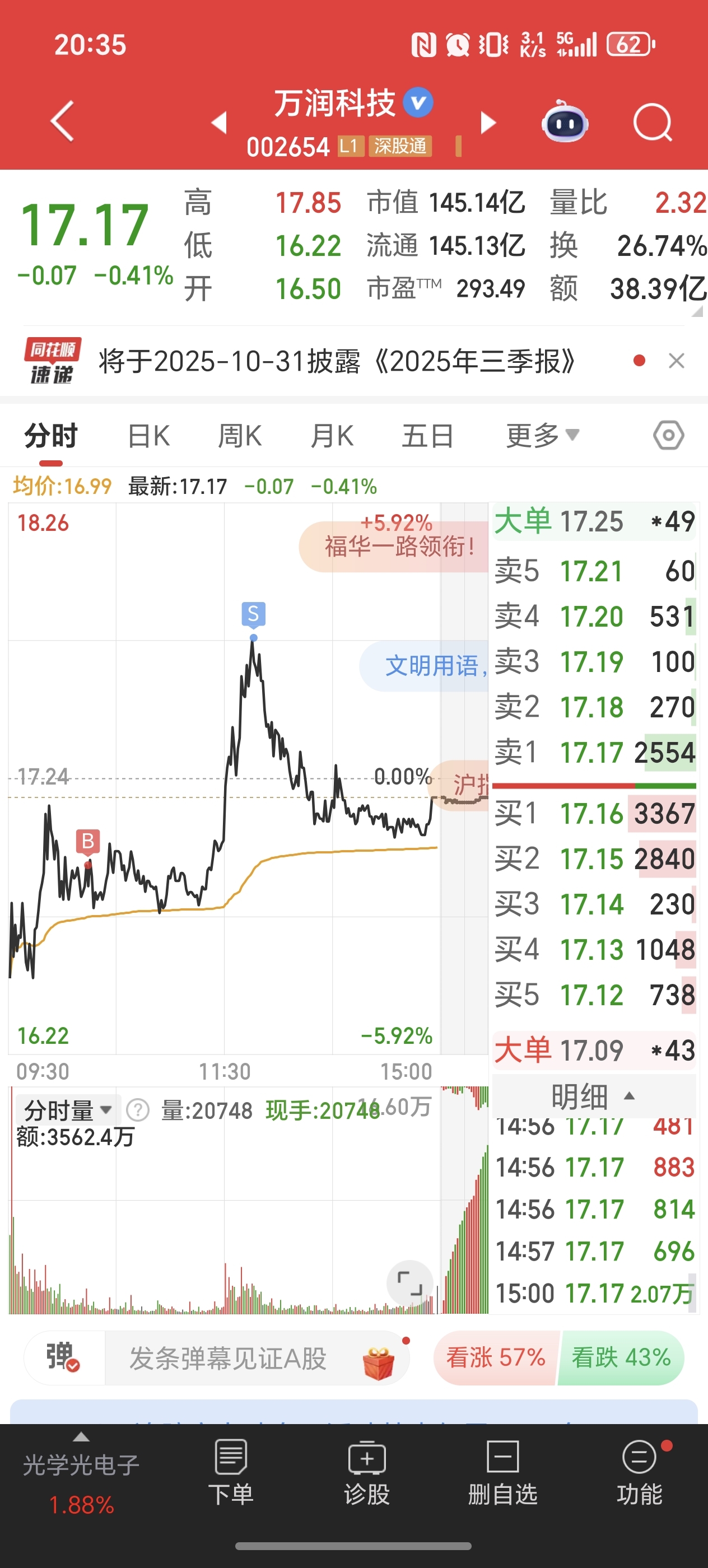 $万润科技(SZ002654)$ 本来定在18.26跑的,看量能不足跑了