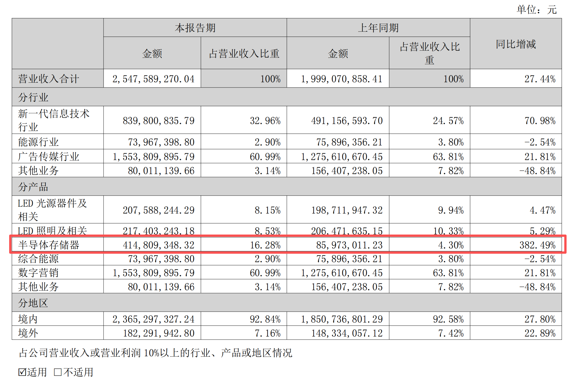 报告期,万润半导体新增多款消费级、工业级和企业级存储产品,包括固态硬盘(SSD)、嵌入式存储(eMMC)等闪存产品和 DDR4 内存条、DDR5 内存条等内存产品,可广泛应用于电脑、手机、智能汽车、数据中心、服务器、安防设备、工控设备、移动存储等领域。