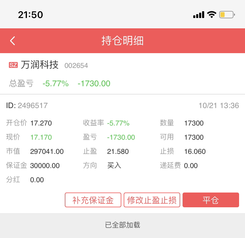 $万润科技(SZ002654)$ 啥情况,加杠杆买了一点,明天不妥
